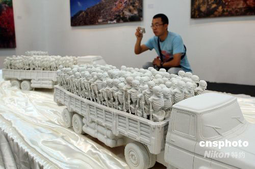 9月11日,正在舉行的2008上海藝術博覽會,共有來自德國、意大利、美國、俄羅斯等20個國家和地區(qū)的140多家一流畫廊參展。本屆藝博會全部展示面積達到2萬4千平方米,成為歷屆之最,不僅繼續(xù)“領跑”亞洲各大藝術博覽會,同時也成為國際上規(guī)模最大的藝術博覽會之一。中新社發(fā) 湯彥俊 攝