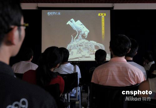 圖:廈門大學(xué)學(xué)生關(guān)注神七航天員翟志剛出艙