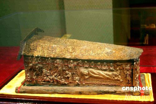 圖為從興隆塔地宮出土被專家鑒定為國(guó)家一級(jí)文物的鎏金銀棺。