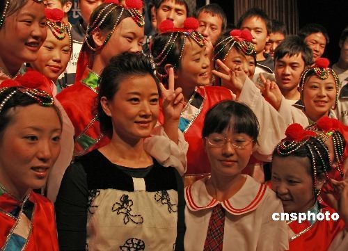 10月24日,湖南宋祖英助學(xué)基金會攜手人民銀行、湖南省婦聯(lián)、湖南省教育廳以及今日女報社,捐資65萬元,資助500名困難學(xué)生和10名教師,其中包括58名長郡中學(xué)理縣班學(xué)生和湖南大學(xué)、中南大學(xué)的20名來自四川災(zāi)區(qū)的大學(xué)生。湖南宋祖英助學(xué)基金會2006年5月登記成立,到目前為止,共捐資120余萬元,資助貧困學(xué)生、獎勵優(yōu)秀教師1000多人。中新社發(fā) 張家根 攝