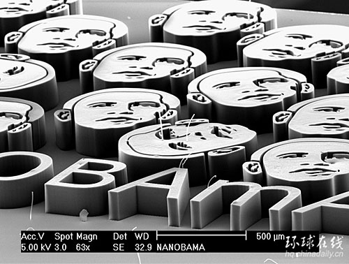 據(jù)美國(guó)生活科學(xué)網(wǎng)報(bào)道,在近期的新聞媒體中,美國(guó)當(dāng)選總統(tǒng)巴拉克·奧巴馬(Barack Obama)的頭像已是司空見(jiàn)慣,不再讓人感到陌生。目前,科學(xué)家使用納米技術(shù)制造了微型三維“納米奧巴馬”頭像,這種立體逼真頭像竟比鹽粒還要小。(劉一川)
