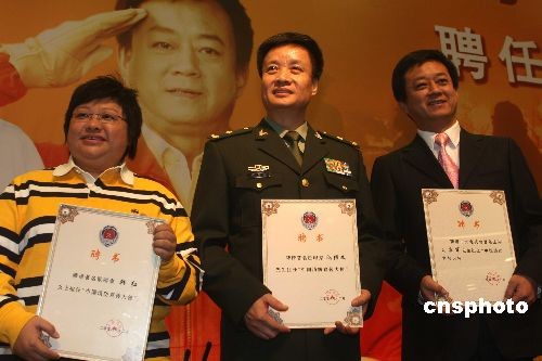 12月17日,文藝界明星閻維文(中)、韓紅(左)、朱軍與中國公安部消防局簽訂協(xié)議,正式出任“中國消防宣傳大使”。任大使期間,他們將參加消防公益宣傳活動,傳播消防安全理念,宣傳普及消防知識,提高國民消防安全素質(zhì)。中新社發(fā) 張宇 攝