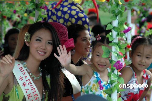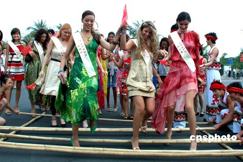 十一月十七日,參加第五十七屆世界小姐總決賽的一百多位佳麗參加了海南島歡樂節(jié)三亞分會場的活動,并在三亞市區(qū)巡游,與市民和游客們共享歡樂。中新社發(fā) 尹海明 攝