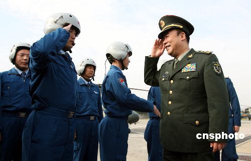 圖為駐港部隊(duì)司令員王繼堂中將在石崗軍營(yíng)出席空軍輪換交接儀式。