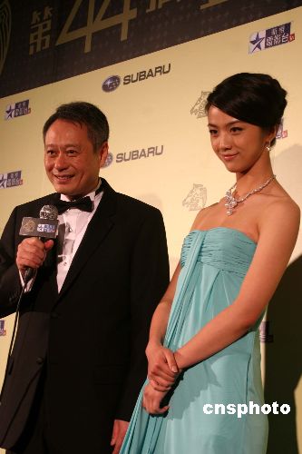十二月八日晚,第四十四屆金馬獎(jiǎng)?lì)C獎(jiǎng)典禮在臺(tái)北小巨蛋舉行。李安獲得最佳導(dǎo)演獎(jiǎng),右為奪得新人獎(jiǎng)的湯唯。