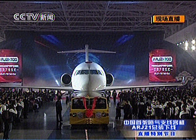 ·中國(guó)新支線飛機(jī)ARJ21總裝下線 明年上半年首飛