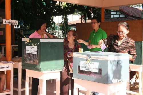 泰國(guó)新一屆國(guó)會(huì)下議院選舉二十三日上午八時(shí)開始在全國(guó)一百五十七個(gè)選區(qū)舉行,八萬(wàn)多個(gè)投票站同時(shí)向選民開放投票。這是泰國(guó)歷史上第二十五次全國(guó)大選,也是泰國(guó)去年發(fā)生政變后首次舉行的新大選投票。據(jù)泰國(guó)選舉委員會(huì)介紹,大選投票將持續(xù)到十五時(shí)結(jié)束,共有約四十個(gè)政黨的五千多名候選人參加本次大選,角逐四百八十個(gè)下議院席位。除去上周已經(jīng)參加提前投票的約三百萬(wàn)名選民以外,當(dāng)天共有合格選民四千二百多萬(wàn),有十個(gè)國(guó)家共向本次大選派出九十一名國(guó)際觀察員。本次大選預(yù)算約為二十億泰銖。中新社發(fā) 顧時(shí)宏 攝