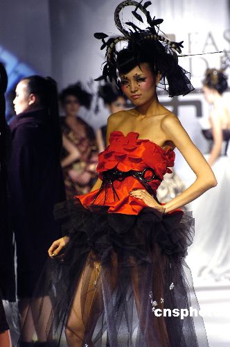 12月22日晚,上海時(shí)裝周推薦知名設(shè)計(jì)師Keeven/翟晏辛在“尚街LOFT”舉辦一場(chǎng)名為“胭—顏—演—晏”之暗夜“晶”靈的主題時(shí)裝秀。發(fā)布會(huì)服裝以黑色為主,凸顯了暗夜主基調(diào)。中新社發(fā) 董鴻景 攝