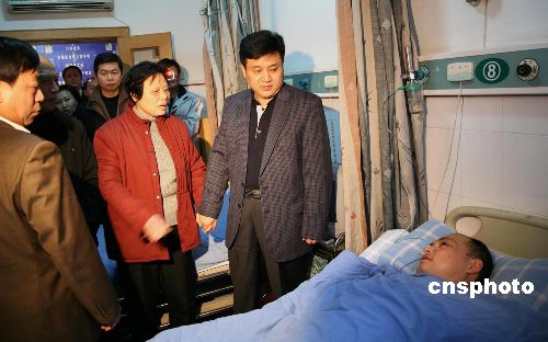 圖為十二月二十五日,國(guó)務(wù)院檢查組第十三組在國(guó)家環(huán)?偩指本珠L(zhǎng)吳曉青(右一)帶領(lǐng)下,在江西省九江市看望九江市商業(yè)行政執(zhí)法稽查支隊(duì)中隊(duì)長(zhǎng)陳衛(wèi)。