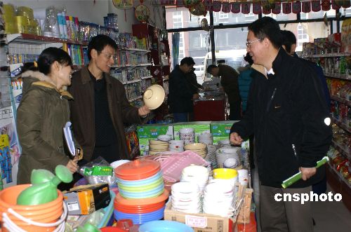 十二月二十六日,全國(guó)產(chǎn)品質(zhì)量和食品安全專項(xiàng)整治行動(dòng)檢查驗(yàn)收小組在超市檢查。全國(guó)產(chǎn)品質(zhì)量和食品安全專項(xiàng)整治行動(dòng)檢查驗(yàn)收小組于本月二十四來(lái)到河南對(duì)河南省產(chǎn)品質(zhì)量和食品安全專項(xiàng)整治行動(dòng)進(jìn)行檢查驗(yàn)收。中新社發(fā) 史寶銀 攝