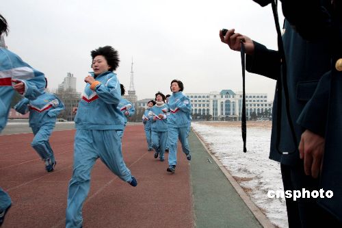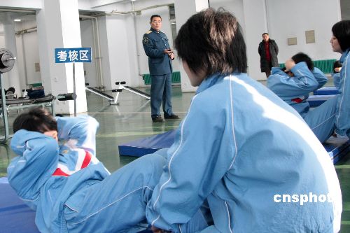 圖為仰臥起坐對女飛學(xué)員來說是小兒科。