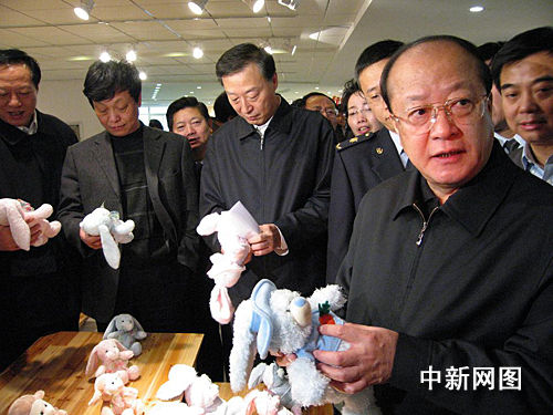 圖:李長江檢查南京玩具生產(chǎn)企業(yè)