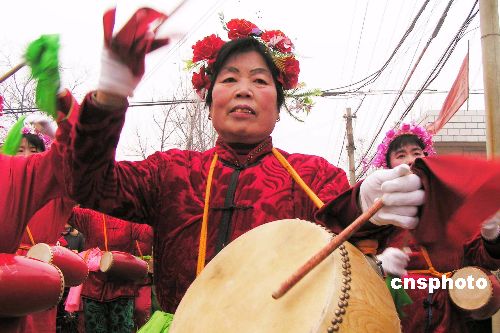 十二月三十一日,河南平頂山市湛河區(qū)村民自發(fā)組織起來,慶祝新年來臨。該區(qū)常住農(nóng)民,近年大力發(fā)展農(nóng)民文化事業(yè)豐富文化生活。各鄉(xiāng)各鎮(zhèn)都有自己的秧歌隊(duì)鼓樂隊(duì)。逢過年過節(jié),都會(huì)自發(fā)組織起來,自娛自樂。中新社發(fā) 慎重 攝