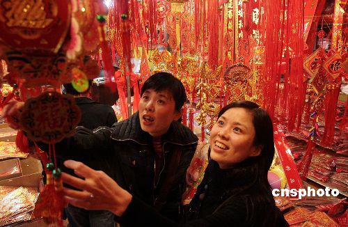 十二月三十一日,為了迎接新年,福建泉州購(gòu)買(mǎi)喜慶用品的市民絡(luò)繹不絕,市場(chǎng)熱鬧非凡!氨瘛睊旒、彩燈、“中國(guó)結(jié)”等的銷(xiāo)售異;鸨,家家戶(hù)戶(hù)都將自家里里外外裝點(diǎn)一新迎接新年。中新社發(fā) 傅丹丹 攝