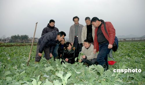 1月30日,農(nóng)技員在指導(dǎo)農(nóng)民為積雪后的油菜排水和傳授油菜防凍技術(shù)。29日江西婺源縣普降大雪,影響了當(dāng)?shù)剞r(nóng)作物生長。當(dāng)日婺源縣組織千名農(nóng)技員奔赴抗擊雪災(zāi)一線,指導(dǎo)農(nóng)民對農(nóng)作物自救,使農(nóng)民損失降到最低。中新社發(fā) 王國紅 攝