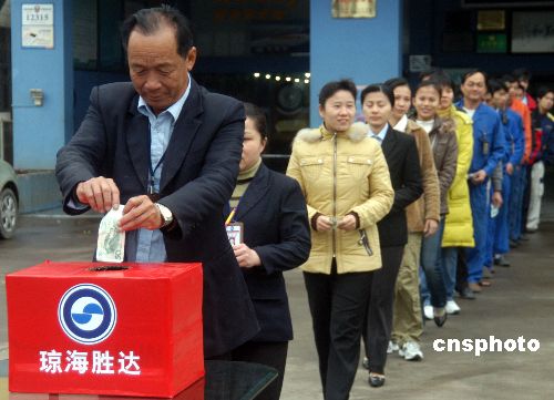 2008年2月5日,瓊海市民在踴躍捐款救災(zāi)。我國南方部分地區(qū)遭受雪災(zāi)牽動全國人民的心,在海南省紅十會倡議組織下,連日來海南各界群眾積極捐款捐物,向災(zāi)區(qū)人民獻愛心。中新社發(fā) 蒙鐘德 攝