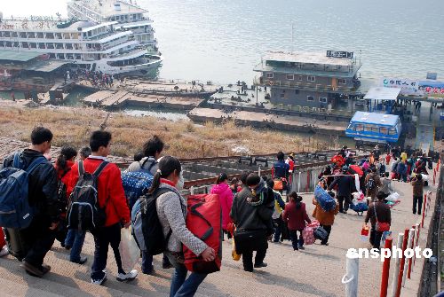 2月14日,在三峽庫區(qū)腹地的重慶云陽港,旅客正乘船出行。當(dāng)天,三峽庫區(qū)出現(xiàn)節(jié)后水路運(yùn)輸高峰。三峽庫區(qū)強(qiáng)大的通航能力、相對(duì)低廉的運(yùn)輸價(jià)格,使水路成為庫區(qū)群眾出行的主要選擇。中新社發(fā) 劉小洋 攝