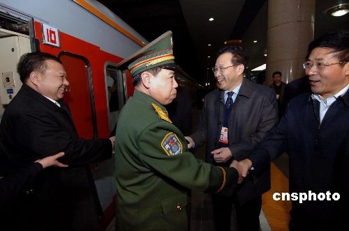 三月二日清晨六點零六分,出席十一屆全國人大一次會議的河南省人大代表乘坐火車抵達北京。他們是首批抵京的京外代表。 中新社發(fā) 王東明 攝