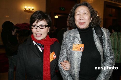 三月三日,在全國政協(xié)新委員名單上令人誤認(rèn)為是演藝明星范冰冰的俄語專家范冰冰(右)露真容,與中央電視臺(tái)新聞播音員李瑞英攜手進(jìn)入北京人民大會(huì)堂,出席全國政協(xié)十一屆一次會(huì)議開幕會(huì)。范冰冰委員身高近一米七二,能說一口流利俄語,是中國國際廣播電臺(tái)俄語部主任、首席播音員。中新社發(fā) 潘索菲 攝
