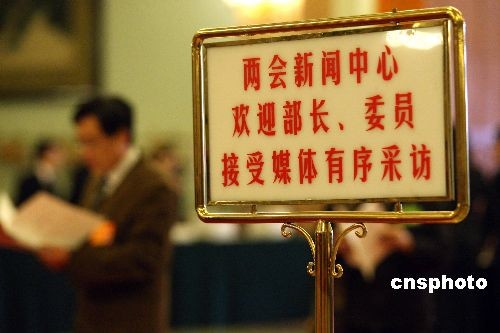 兩會(huì)新聞中心為方便媒體采訪“部長”設(shè)引導(dǎo)牌