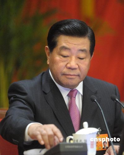 3月12日,全國政協(xié)十一屆一次會議在北京全國政協(xié)禮堂舉行第三次主席團會議,表決通過十一屆全國政協(xié)主席、副主席、秘書長、常委候選人名單等事項。圖為十屆全國政協(xié)主席賈慶林按表決器。中新社發(fā) 廖攀 攝