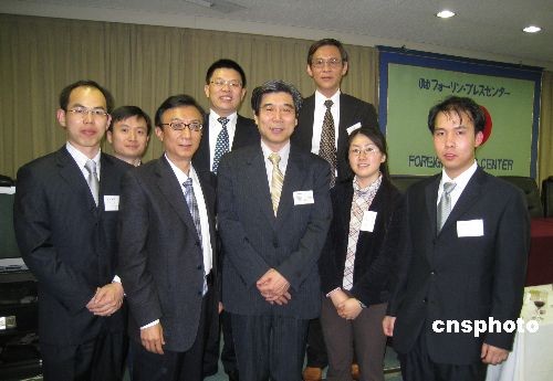 日本外務省新任新聞發(fā)言人兒玉和夫3月14日晚在東京與中國新華社、光明日報等駐日記者交流時表示,日本外務省正在全力準備迎接胡錦濤主席訪日。胡主席成功訪日,對于進一步加強日中關系有著非常重要的意義。圖為兒玉和夫(前排中)和中國記者們合影。中新社發(fā) 段躍中 攝
