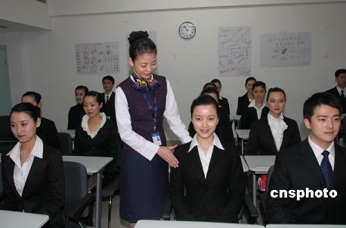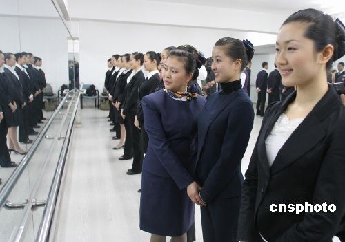 3月18日,國航從“奧運(yùn)空乘”成都賽區(qū)選拔出的首批34名優(yōu)秀學(xué)員,集中在國航西南分公司成都乘務(wù)員培訓(xùn)中心開始接受近三個(gè)月的乘務(wù)員初始培訓(xùn),培訓(xùn)成績優(yōu)異者將投入國航奧運(yùn)航線客艙服務(wù)。這批學(xué)員包括12名男學(xué)員、22名女學(xué)員,清一色為大專以上學(xué)歷,其中14人達(dá)到本科學(xué)歷,為乘務(wù)培訓(xùn)中心接收的學(xué)歷最高的一批乘務(wù)學(xué)員。中新社發(fā) 易世忠 攝