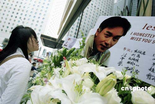 圖:鮮花簇簇寄托對張國榮的思念