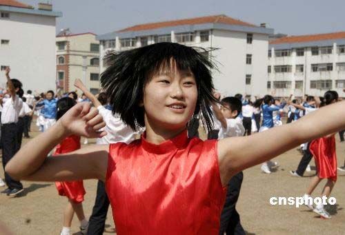 圖:山東威海舉辦迎奧運(yùn)校園集體舞大賽(5)