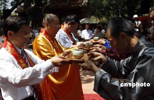4月6日,臺灣歷史上首次以茶祭孔的“臺茶祭孔 府城飄香”主題茶會在臺南孔廟登場。主辦方稱,祭孔時安排敬茶儀式,旨在讓民眾了解茶禮儀的意義與內(nèi)涵,彰顯臺茶祭孔禮儀,復(fù)興茶禮圣神仙佛的優(yōu)良傳統(tǒng)風氣。中新社發(fā) 杜洋 攝