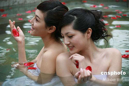 4月13日,安徽黃山醉溫泉湯池舉行模特秀。歷經兩年勘測和開發(fā)后,安徽黃山醉溫泉已全面建成并投入使用。當日,花瓣錦簇,香氣四溢,男女模特在44.4度的溫泉戲水,“秀”出風情萬種、人與自然和諧共存的美好景象。中新社發(fā) 方也廣德 攝