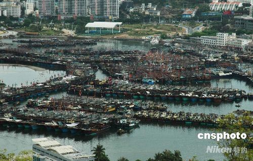 4月18日,海南大量漁船停靠在三亞港避風(fēng)。中新社發(fā) 尹海明 攝