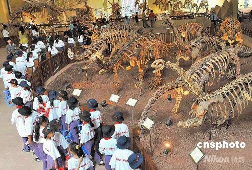 4月18日上午,世界最大恐龍遺址——世界恐龍谷在云南祿豐縣開園,重現(xiàn)了一個(gè)失落的侏羅紀(jì)時(shí)代。世界恐龍谷主題公園規(guī)劃面積4平方公里,匯集了60具恐龍骨骼化石,堪稱世界奇觀。景區(qū)由“恐龍遺址科考觀光區(qū)”和“侏羅紀(jì)世界旅游區(qū)”兩大部分組成。目前,占地1平方公里的一期核心景區(qū)向游人開放。圖為游客正在世界恐龍谷參觀。中新社發(fā) 袁云 攝