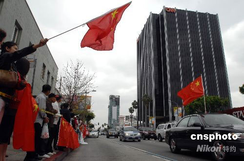 當地時間4月19日,洛杉磯爆發(fā)十幾年來最大規(guī)模的華人華僑抗議示威活動。數千名華人華僑和留學生在CNN洛杉磯分部門前參加和平示威,要求CNN向公開鄭重道歉,并開除卡弗蒂。一些學生和僑民乘坐汽車在日落大道上來回穿梭,他們揮舞著五星紅旗和抗議標語牌與兩側人行道的抗議人群相互呼應。 中新社發(fā) 張煒 攝