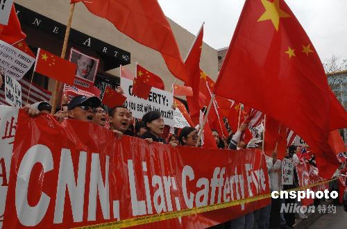 當(dāng)?shù)貢r間4月19日,洛杉磯爆發(fā)十幾年來最大規(guī)模的華人華僑抗議示威活動。數(shù)千名華人華僑和留學(xué)生在CNN洛杉磯分部門前參加和平示威,要求CNN向公開鄭重道歉,并開除卡弗蒂。除了中國大陸籍華人華僑外,很多來自越、柬、寮和印尼等國的旅美華人華僑、香港和臺灣籍僑民和留學(xué)生也加入到抗議隊(duì)伍中。中新社發(fā) 張煒 攝