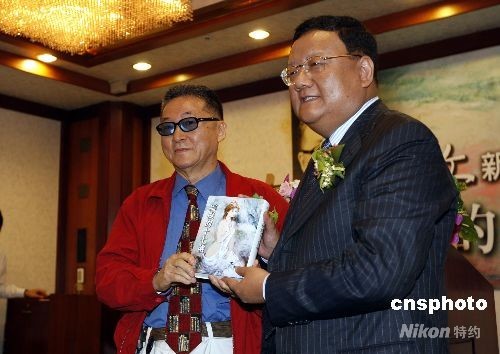 圖為李敖向鳳凰衛(wèi)視總裁劉長樂贈書。中新社發(fā) 杜洋 攝