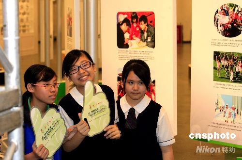 圖為香港學(xué)生觀摩奧運(yùn)圖片展覽。 中新社發(fā) 王麗南 攝