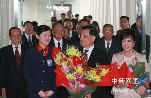 中國(guó)國(guó)民黨榮譽(yù)主席連戰(zhàn)一行28日下午4時(shí)許抵達(dá)北京首都國(guó)際機(jī)場(chǎng),展開訪問大陸行程。中共中央臺(tái)辦、國(guó)務(wù)院臺(tái)辦主任陳云林,常務(wù)副主任鄭立中,海峽兩岸關(guān)系協(xié)會(huì)常務(wù)副會(huì)長(zhǎng)李炳才,中共北京市委常委、北京市常務(wù)副市長(zhǎng)吉林等到機(jī)場(chǎng)迎接。廖文靜 攝