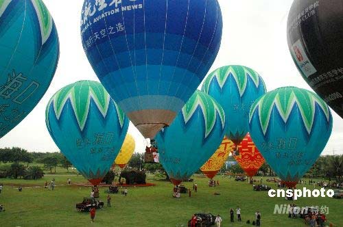 四月二十八日,海口熱氣球節(jié),來自全國的四十支熱氣球隊攪熱椰城,近千名市民爭乘熱氣球體驗升空感受。中新社發(fā) 王辛莉 攝
