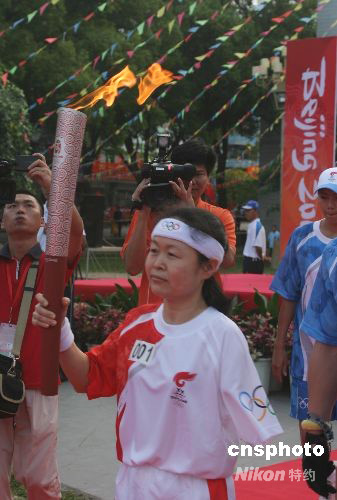 圖:殘奧會(huì)冠軍傳遞五指山首棒奧運(yùn)圣火 (2)