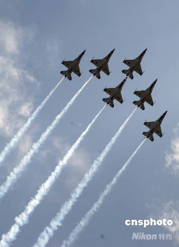 美國“雷鳥”飛行隊特技表演驚心動魄(3)
