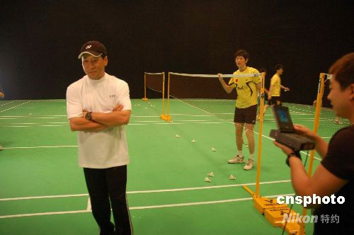 5月6日下午,中國羽毛球隊(duì)總教練李永波與羽球國手鮑春來,一同出現(xiàn)在北京奧運(yùn)環(huán)保公益廣告片的拍攝現(xiàn)場。由“中國環(huán)境意識(shí)項(xiàng)目”主辦、北京華映人國際影業(yè)投資有限公司拍攝的北京奧運(yùn)環(huán)保公益廣告系列片。此次李永波出演的《節(jié)約能源篇》是該系列片的最后一部。據(jù)悉,該片是“中國環(huán)境意識(shí)項(xiàng)目”的子項(xiàng)目,也是聯(lián)合國開發(fā)計(jì)劃署、北京奧組委和環(huán)境保護(hù)部的合作項(xiàng)目,目前已開始陸續(xù)在奧組委大型活動(dòng)、中央電視臺(tái)及奧運(yùn)賽場上循環(huán)播放。中新社發(fā) 潘旭臨 攝