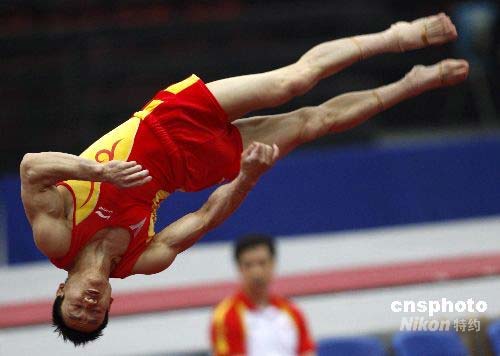 ,“全能王”楊威參加了全部六個單項的比賽,沒有一項失誤,是本次比賽成功率最高的一個。圖為楊威在自由操比賽中。中新社發(fā) 杜洋 攝