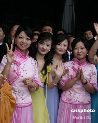 亮麗的日本少女為胡錦濤主席送行。中新社發(fā) 齊彬 攝