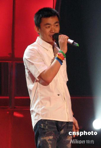 5月10日,“微笑北京 奧運先鋒”2008北京青少年公益電影節(jié)開幕式在北京舉行。此項活動以公益電影文化活動為載體,旨在傳播優(yōu)秀的電影文化,提高青少年文化素養(yǎng)。王寶強在現(xiàn)場為觀眾獻歌。中新社發(fā) 任海霞 攝