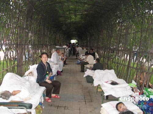 位于成都北郊的成都軍區(qū)總醫(yī)院接收了來自地震災(zāi)區(qū)的100多名傷員。在積極組織搶救的同時,醫(yī)院搭建10余頂大型帳篷,將住院的1000多名患者全部安全轉(zhuǎn)移。中新社發(fā) 朱琥 攝
