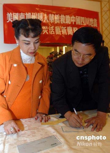 圖:南加州僑領(lǐng)為四川地震災(zāi)區(qū)捐款(2)