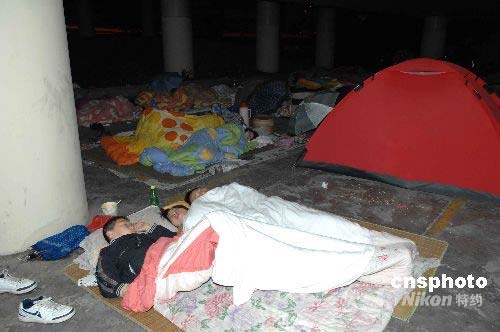 圖:成都地震災區(qū)民眾露宿街頭立交橋下(2)