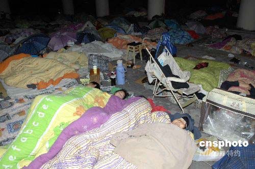 圖:成都地震災區(qū)民眾露宿街頭立交橋下(4)