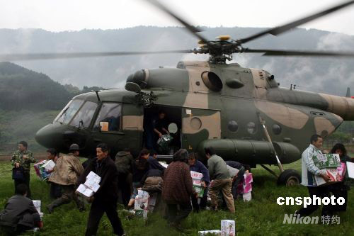 直升機(jī)為汶川災(zāi)民送去首批救災(zāi)物資